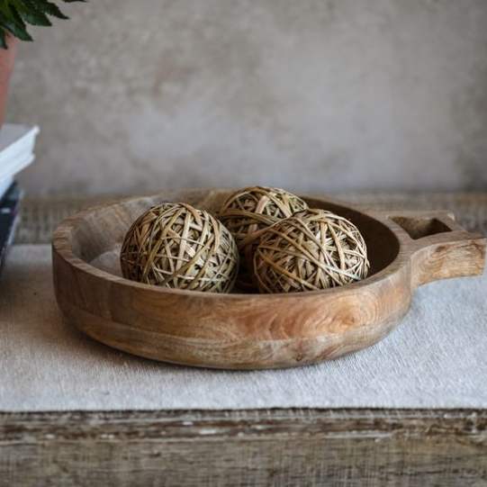Add rustic charm to your home with this 10" Shallow Wood Bowl, thoughtfully crafted with a smooth, natural wood finish and an easy-to-grip handle. Perfect for displaying decorative accents, holding keys or trinkets, or serving as a standalone centerpiece. Its organic shape and warm tones bring a touch of nature to any tabletop or shelf.