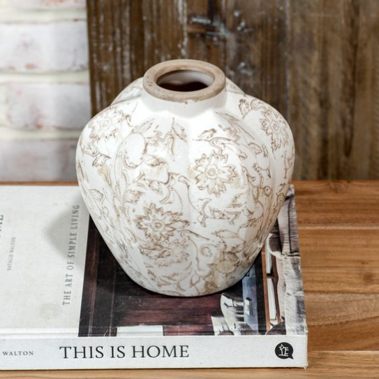 Add a touch of timeless elegance to your space with the 6.5" Beige Heirloom Accent Vase. Featuring a delicate floral design, this beautifully crafted vase blends vintage charm with modern sophistication. Its neutral beige tone makes it a versatile piece, perfect for displaying fresh or dried florals or as a standalone decorative accent. A lovely addition to any shelf, mantel, or table setting!
