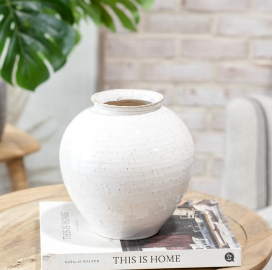 Add a touch of elegance to your space with this 8" White Ceramic Glazed Textured Round Vase. Featuring a beautifully textured surface and a sleek glazed finish, this versatile piece is perfect for showcasing fresh or dried florals. Its classic round shape and neutral white color make it a stylish addition to any decor, from modern to rustic. Whether displayed alone or as part of a centerpiece, this vase brings effortless charm to any room.