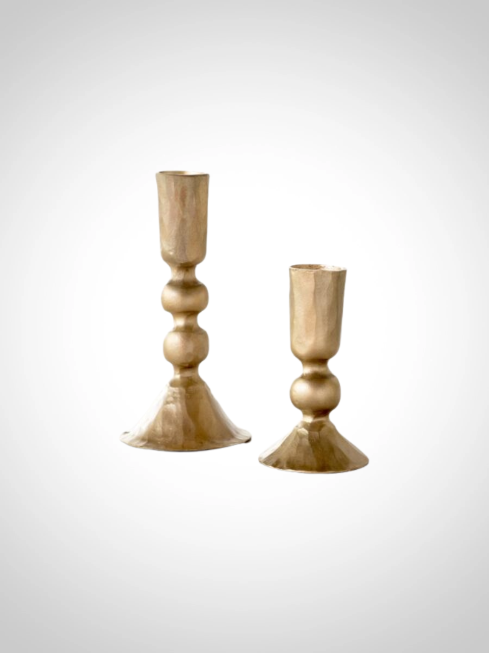 Elevate your decor with these exquisite antique gold candle holders. Each piece is meticulously crafted with intricate detailing, exuding timeless elegance and charm. Perfect for creating a warm, inviting ambiance, these candle holders are ideal for any occasion, from intimate dinners to festive celebrations. Add a touch of sophistication to your home with these stunning antique gold accents.