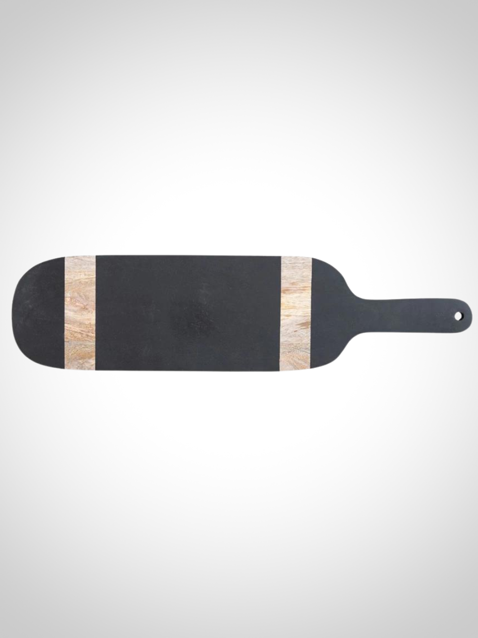 Mango Wood Cheese/Cutting Board w/ Stripes & Handle, Black & Natural.