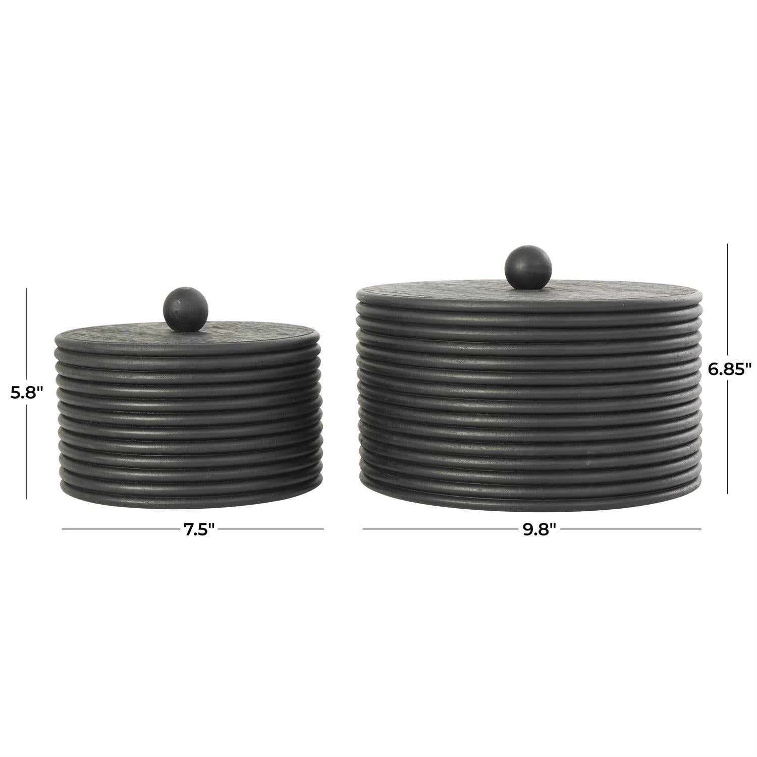 Inspired by sleek elegance and clean lines, a minimalistic design offers effortless luxury with monochromatic tones and bold, angular structures. Crafted from durable wooden MDF material, this black decorative box set exudes quality and longevity. Round decorative storage boxes set showcases a matte black finish, subtly highlighting the natural wood grain texture and ribbed pattern for a contemporary aesthetic.