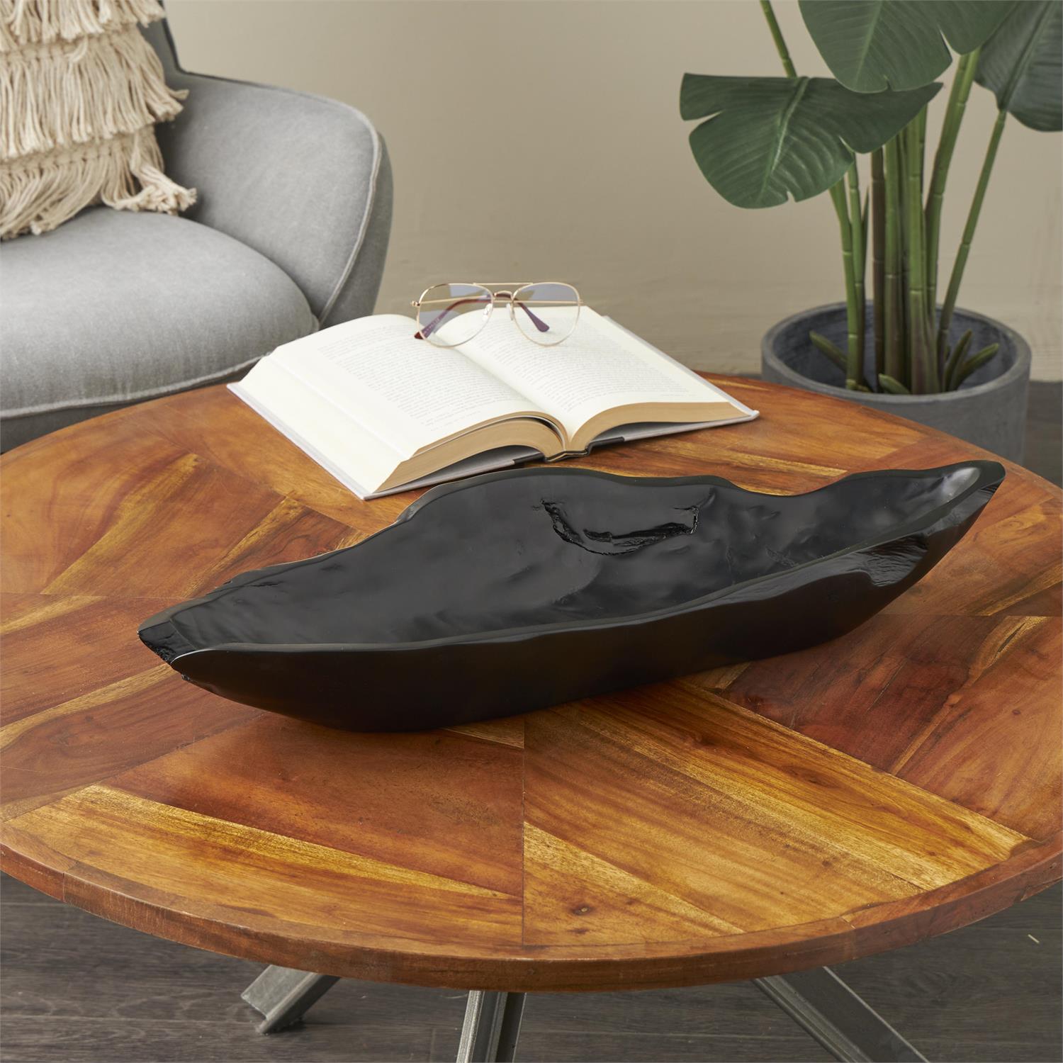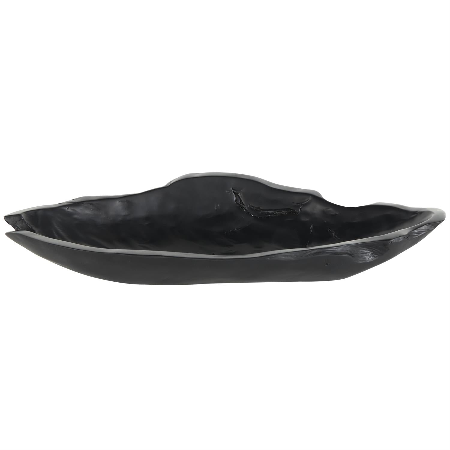 A breathtaking teak wood live edge decorative bowl that's elevated by a unified, all-matte black color. Live edge design of this teak wood decorative bowl showcases its raw and natural contours, adding rustic elegance to any setting.