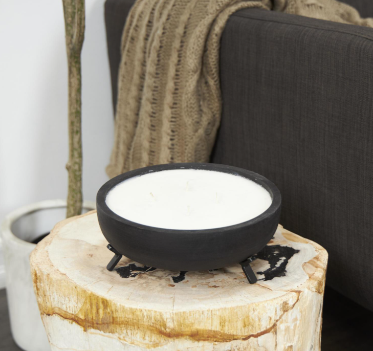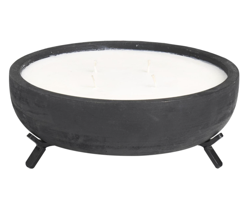 Inspired by sleek elegance and clean lines, a minimalistic design offers effortless luxury with monochromatic tones and bold, angular structures. Our decorative candle is crafted from white wax housed in a black wood bowl with a black metal stand, and can be used as a decorative accent piece once the candle burns through.