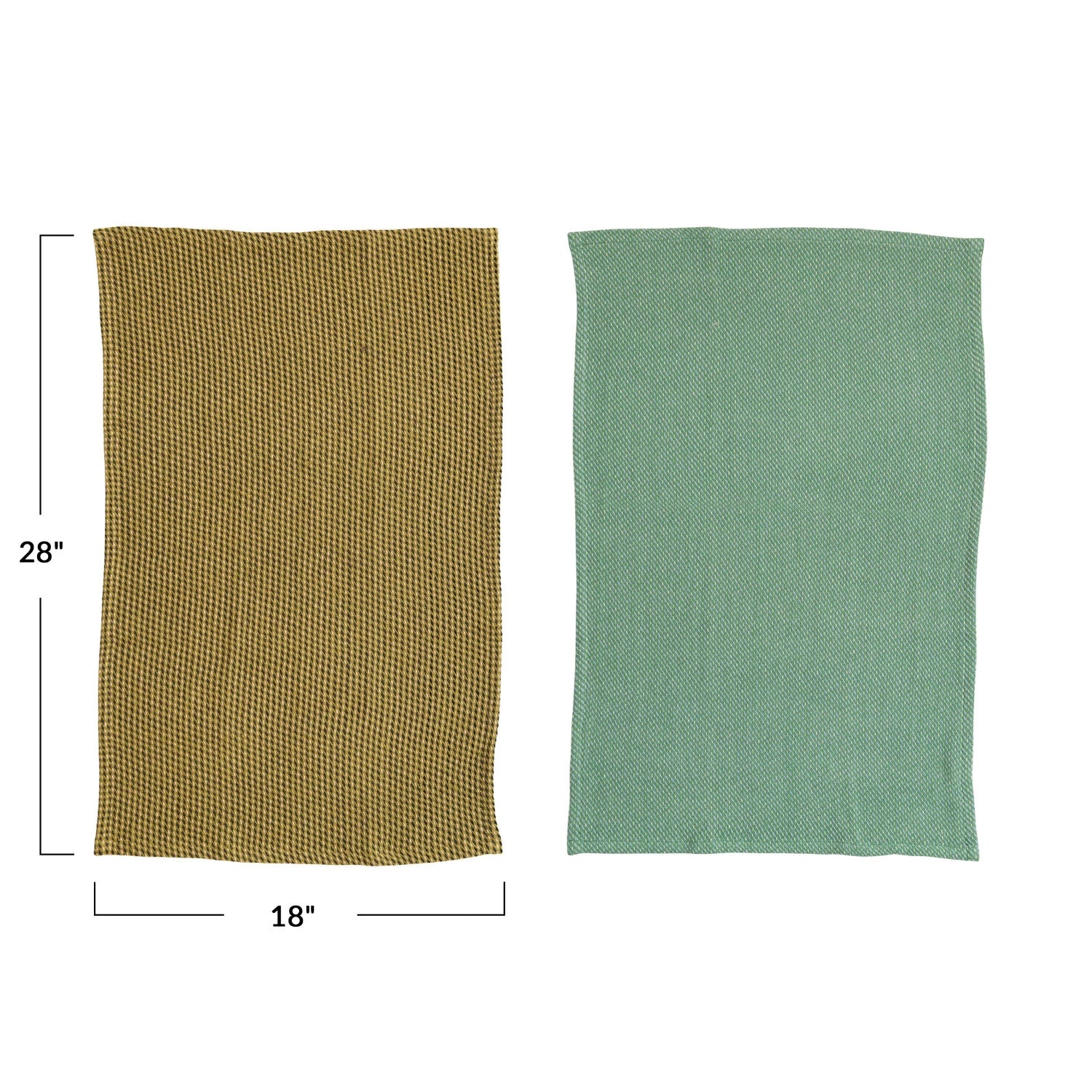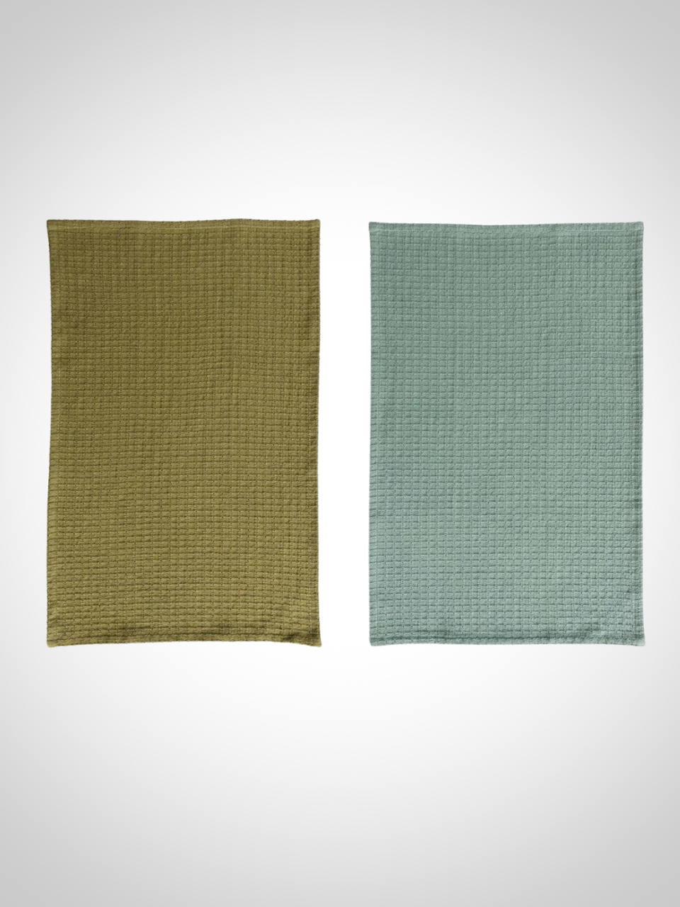 Cotton Waffle Weave Tea Towels, Teal & Olive Color. Machine Wash Warm.
