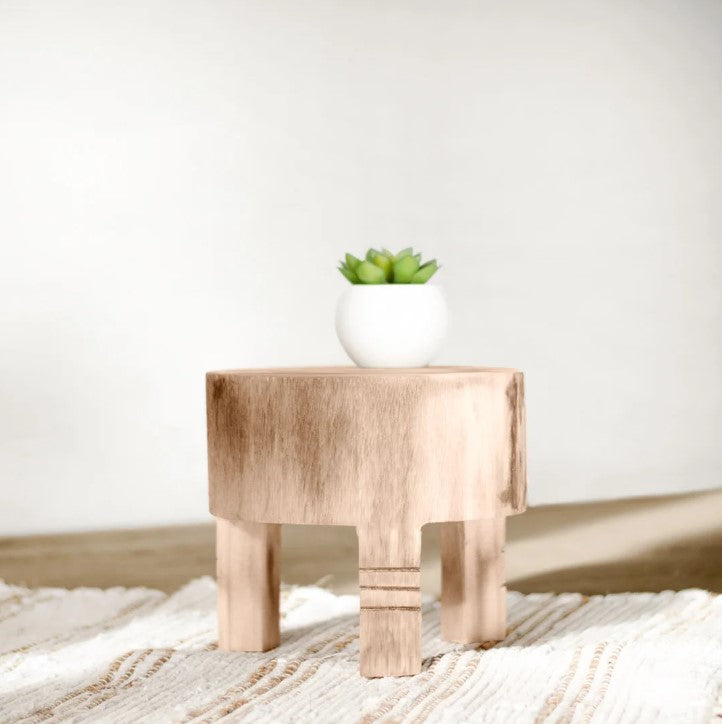 Use this 8" carved wood stool to rest a plant on or as an accent to another table for drinks.