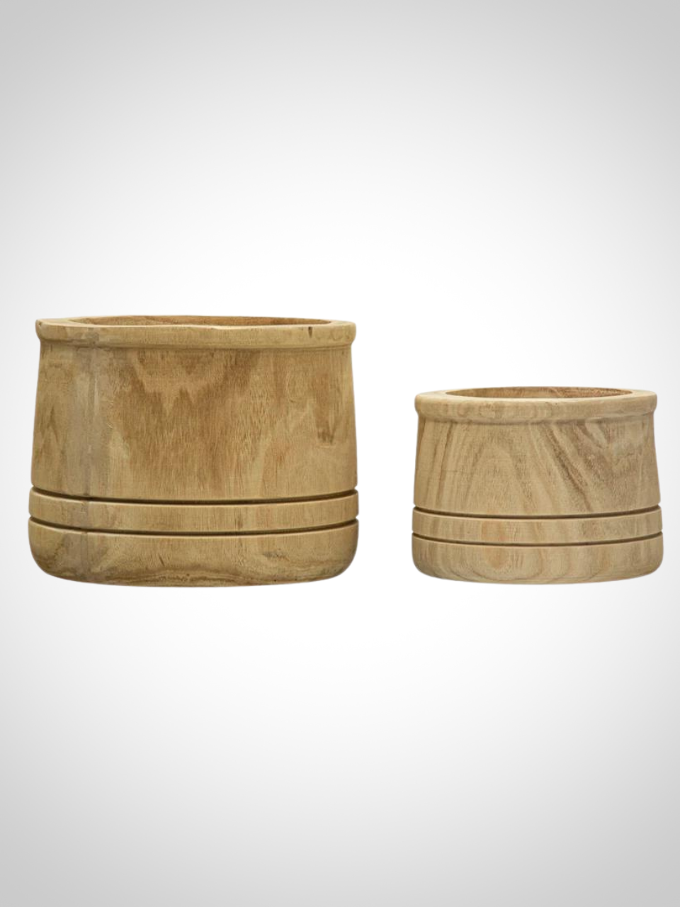 Paulownia Wood Planters w/ Carved Lines, two sizes (Holds 10" & 8" Pots).