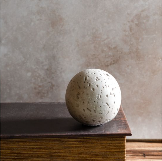 This cream decorative cement ball adds a modern touch to any space with its smooth, matte finish and neutral color. Its durable, sculptural design makes it a versatile accent for a variety of interiors.