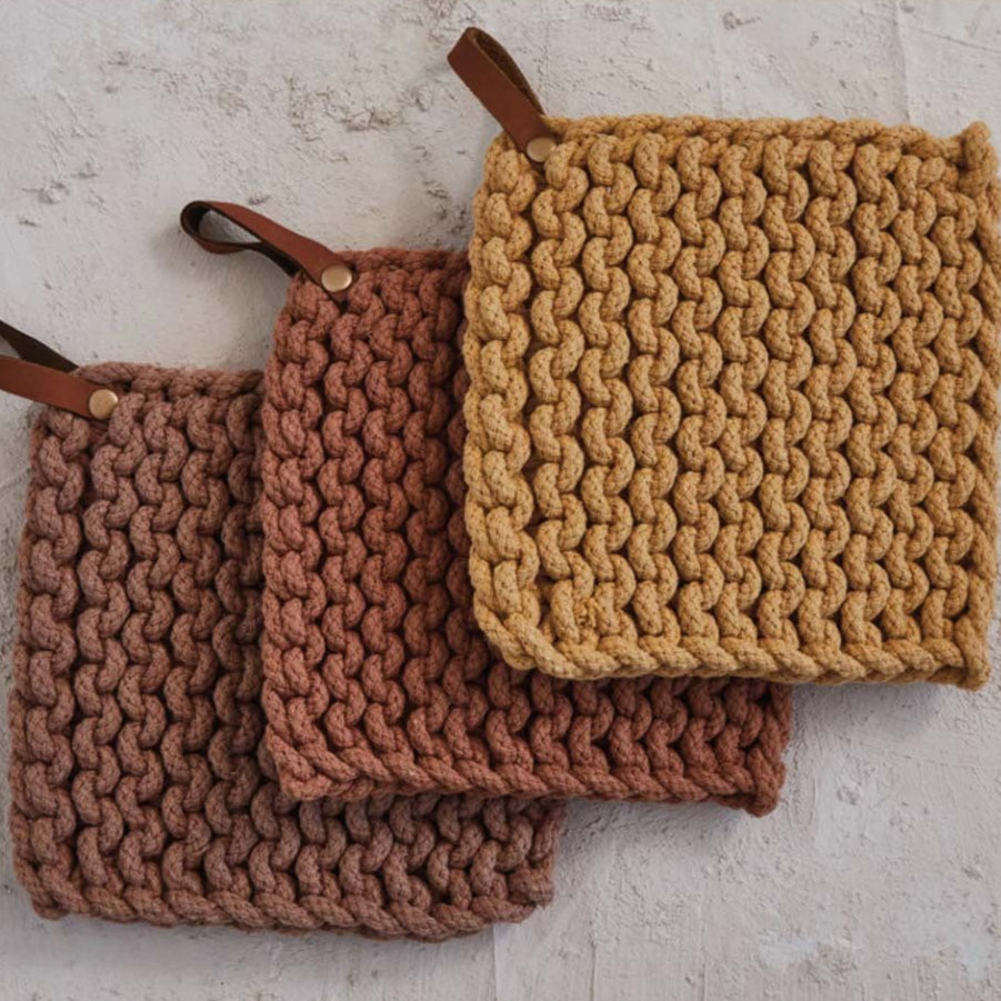 Crocheted Pot Holder with Leather Loop