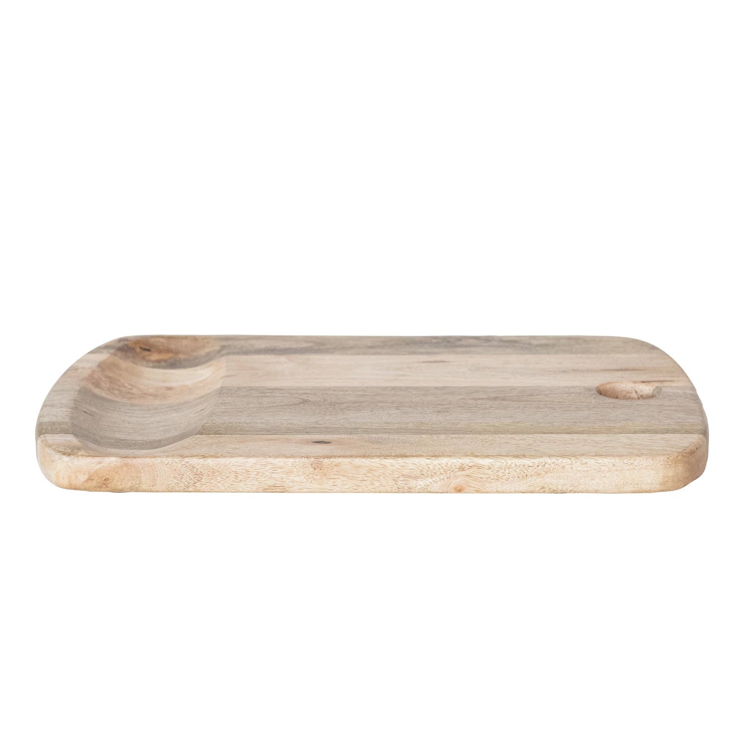 This Culinary Craftsman Mango Wood Cheese and Cutting Board marries functionality with aesthetic appeal. The thoughtful design includes a catch-all area to keep the space neat and a handle that is 1.5 inches in diameter for easy handling and effortless carrying and storage. Crafted from sustainable mango wood, this board is not only sturdy but also adds a warm, inviting touch to any kitchen.