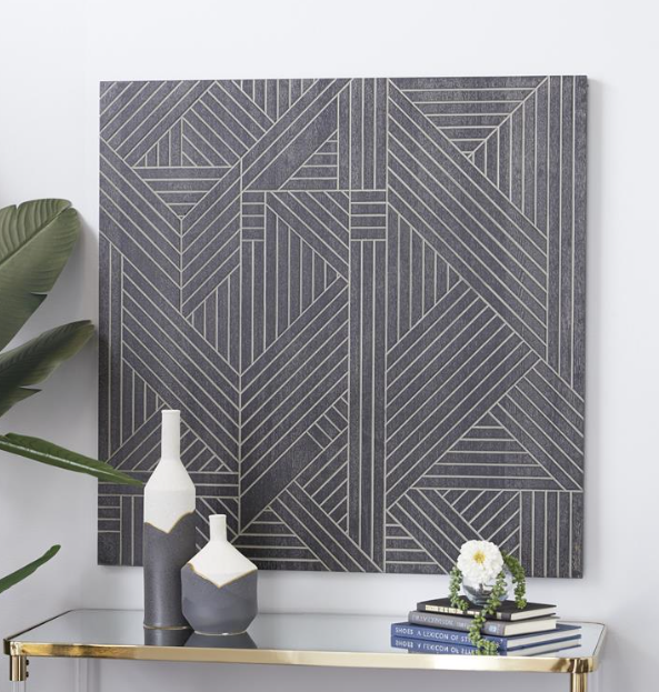 Engraved lines form an Art Deco pattern on the sturdy wood and mdf. This wall art features a black finish that works well in a 1920s-themed space or even a modern room.
