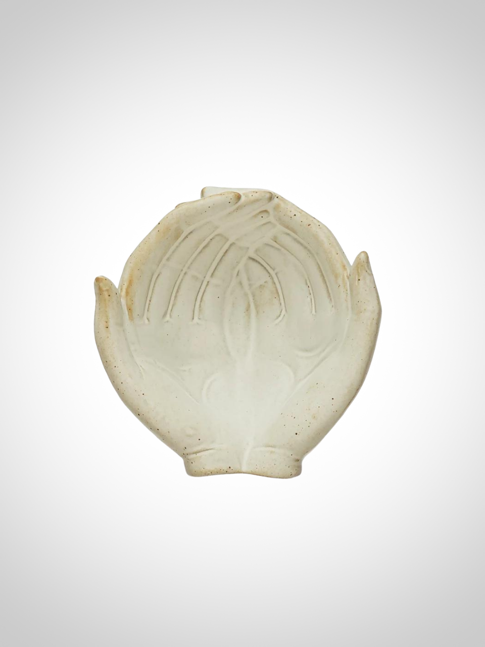 Stoneware Hands Bowl, Reactive Glaze, White (Each One Will Vary).