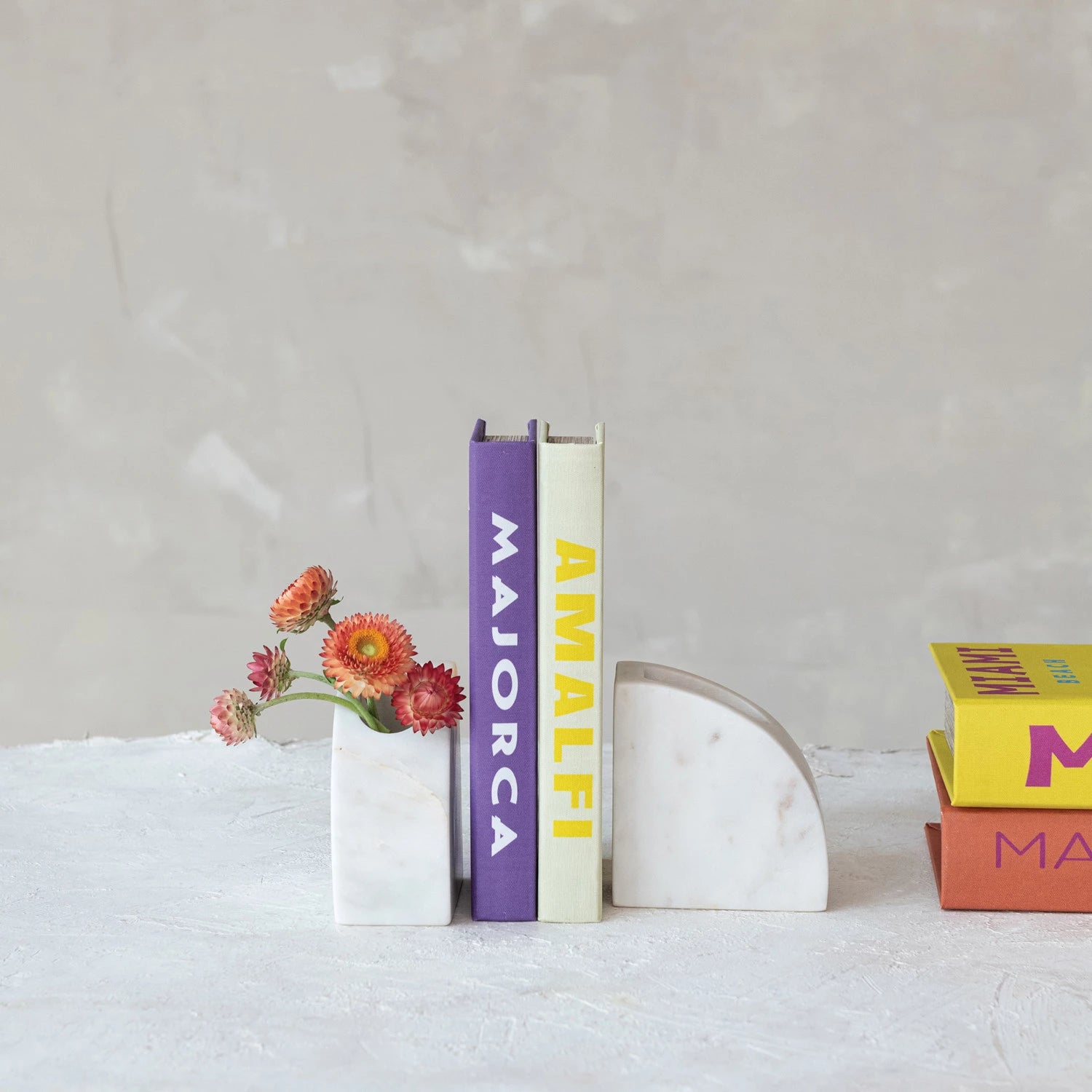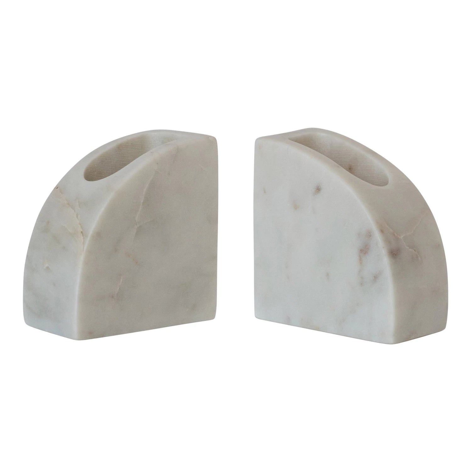 Add a touch of elegance and sophistication to your space with these stunning A4" L x 2" W x 4" H Marble Vase/Container Bookends in a pristine white finish. Perfectly designed to hold your books in place, these bookends feature a sleek, modern marble look that enhances any bookshelf, desk, or display area. Crafted from durable marble, they provide both style and functionality, making them an ideal addition to your home office, living room, or library.
