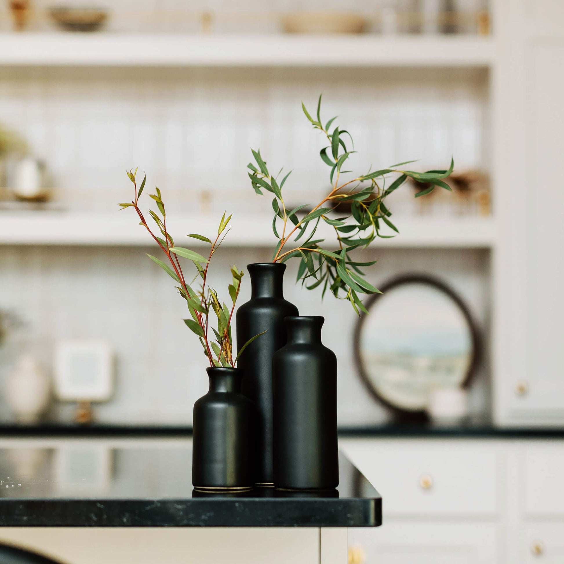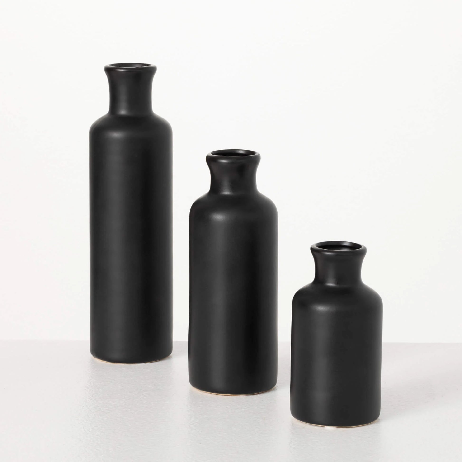 These matte black vases are a must-have addition to your decor. Versatile in color and style, they nicely compliment a variety of decorating styles and can be filled with seasonal foliage to carry you through out the year.