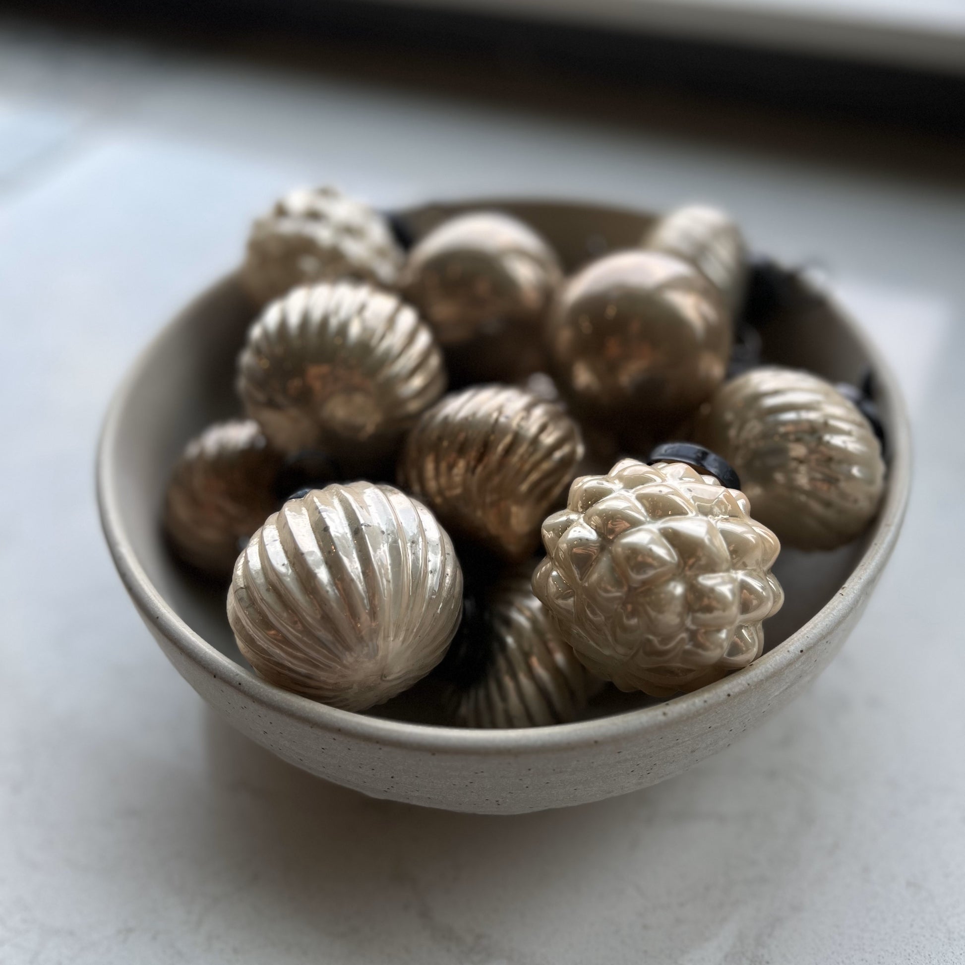 Indulge in the irresistible charm and beauty of our exquisite Mercury Glass Ornament in a variety of styles and colors! With its subtle shades of taupe and cream and a petite size of 2"x2", prepare to be enchanted by its elegant and timeless appeal. Order yours now and add a touch of sophistication and grace to your holiday decor! Priced per each, assorted styles and colors.