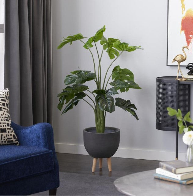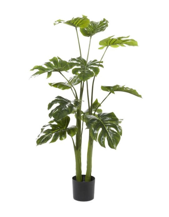 This artificial Swiss cheese plant carries glossy leaves and stems