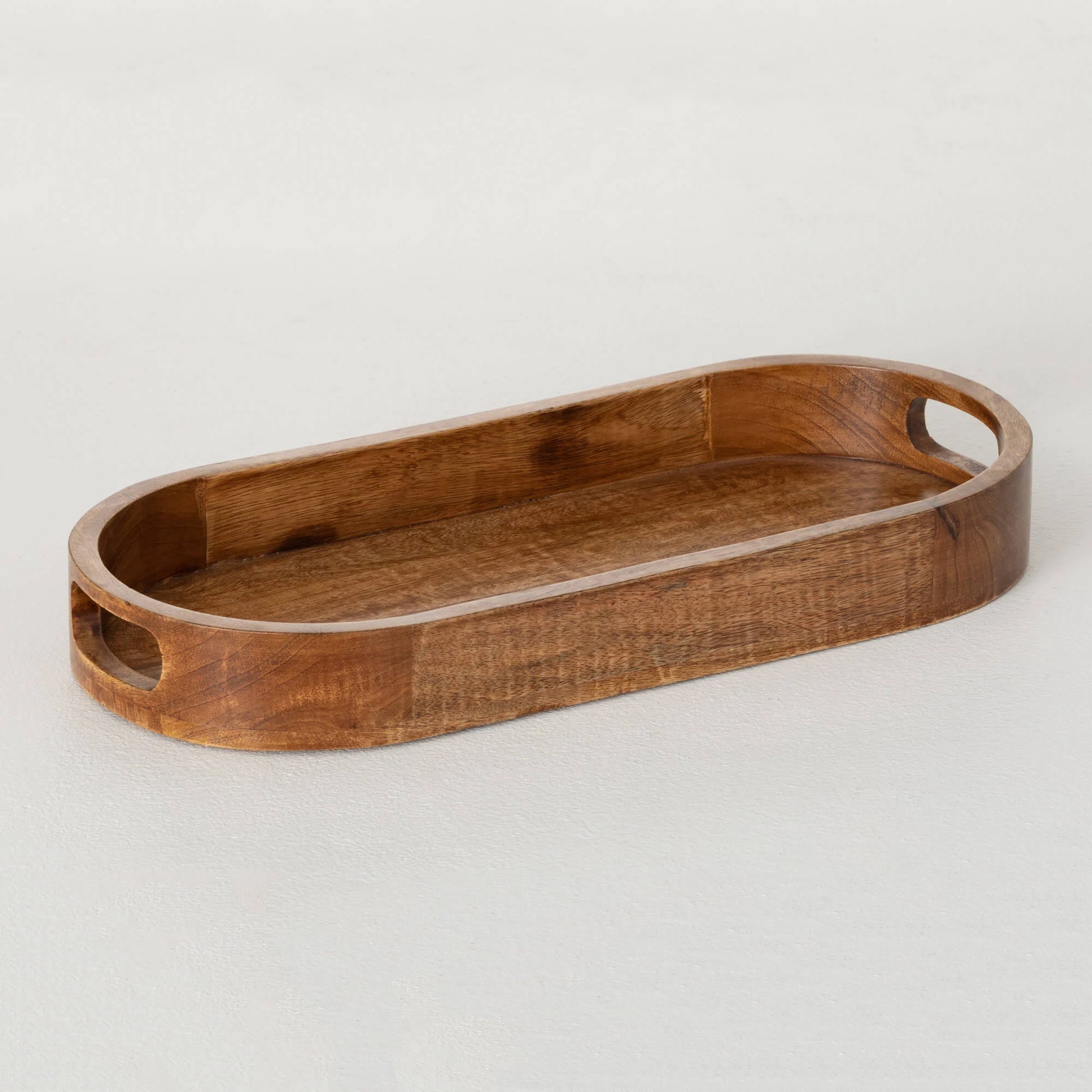 This stylish and functional serving tray is the perfect accessory to your home decor. Crafted by artisans from high-quality wood, this tray features built-in handles and is perfect for hosting or displaying your favorite items.