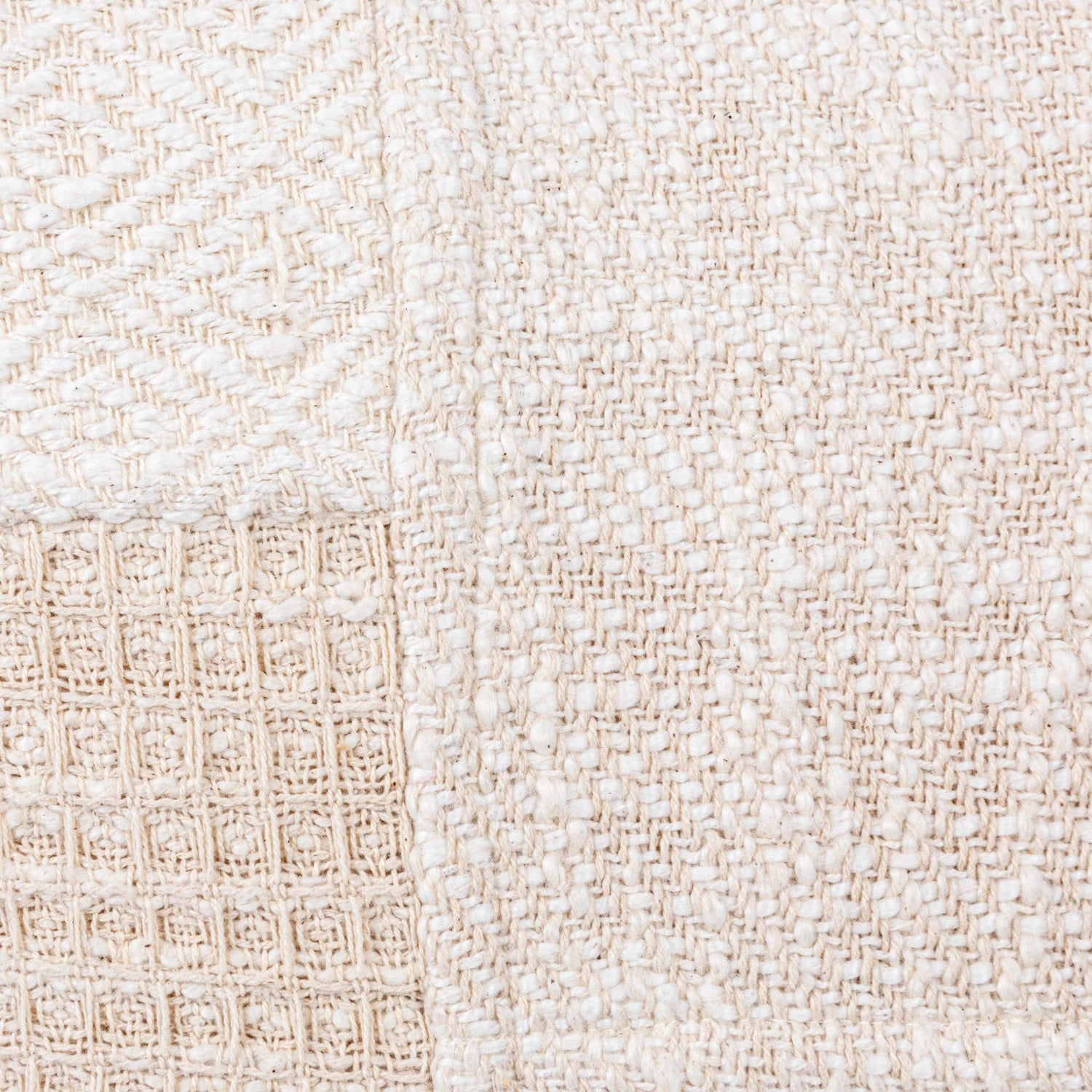 Introduce a charming and cozy touch to every living space with this 18-inch square cotton patchwork pillow with a delightful combination of cream and natural tones in a patchwork design, creating a warm and inviting aesthetic. This pillow features a high-quality cotton cover with a patchwork pattern and a polyester filler for lasting comfort and support. This product is made of cotton and polyester filler.