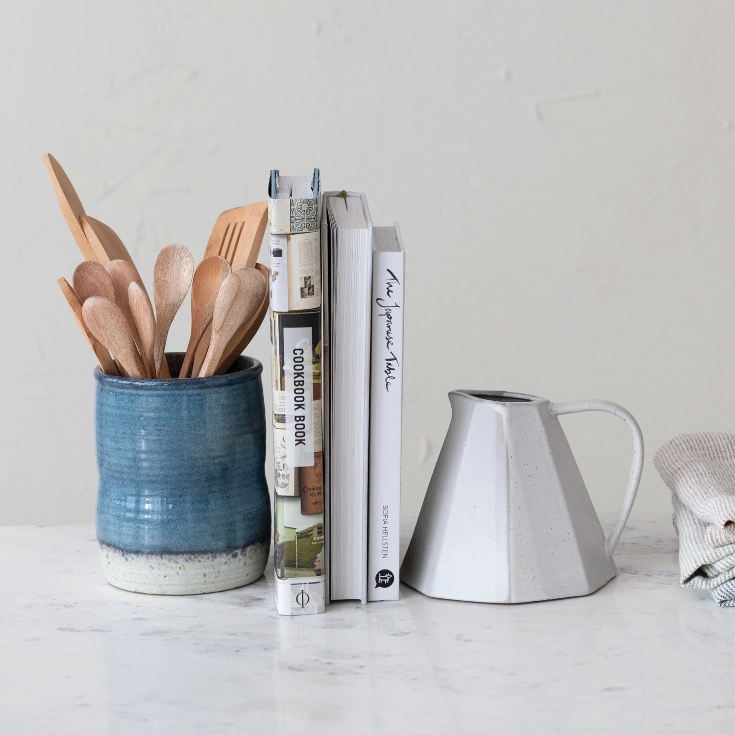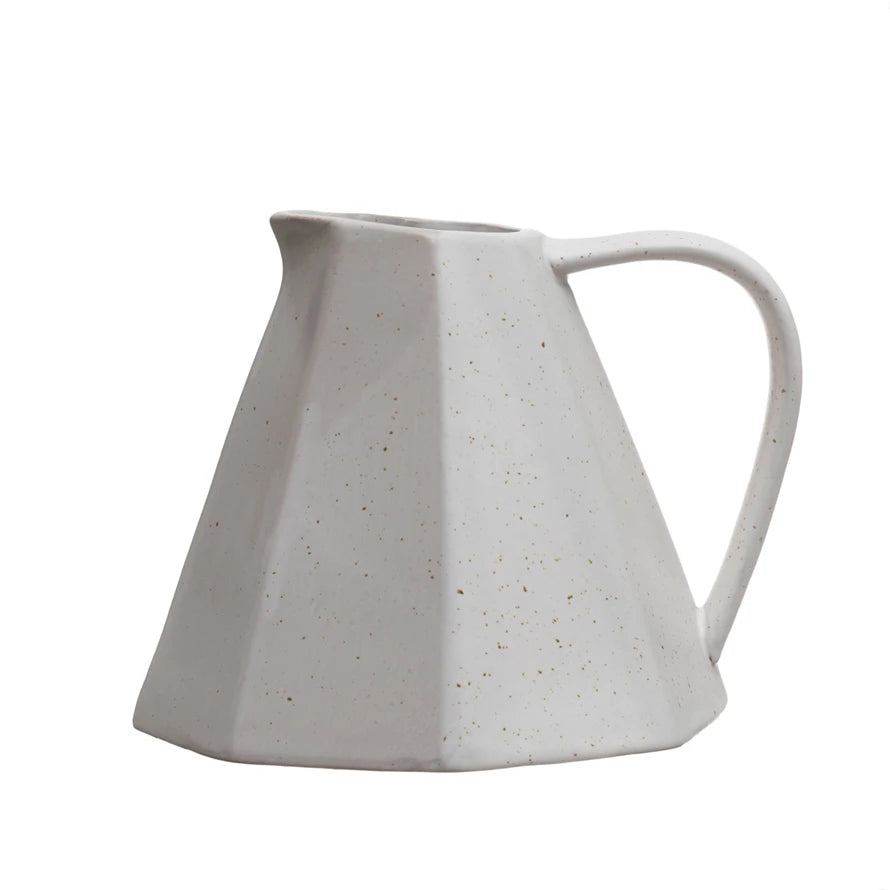 7-1/4"L x 6-1/2"W x 5-1/2"H 32 oz. Stoneware Pitcher w/ Pleated Sides, Reactive Glaze, Matte White (Each One Will Vary), 32 oz.