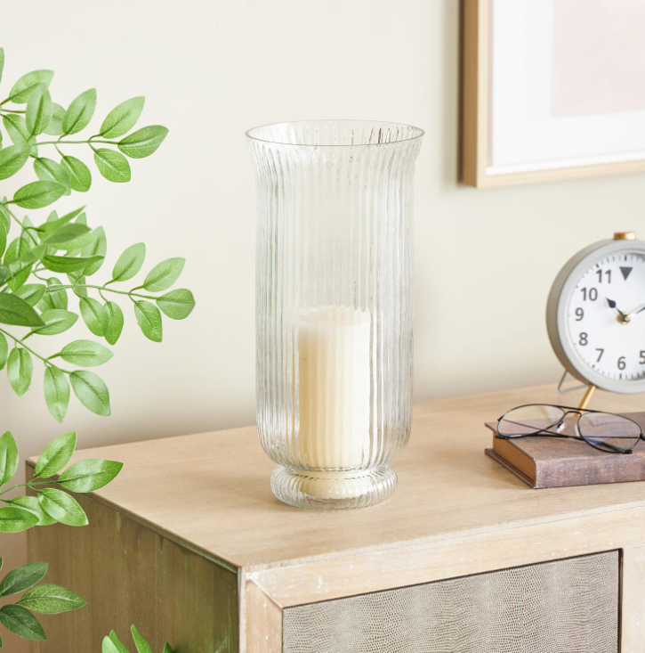 Made from high-quality blown glass, this clear decorative candle holder ensures lasting durability and shines brilliantly when hit by light. Round candle stand holder boasts a polished clear finish that effortlessly enhances its aesthetic appeal. Glass candle holder features an intricate ribbed design that catches light beautifully, creating a stunning visual effect.