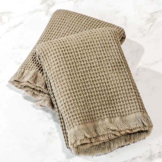 Add a touch of charm and functionality to your kitchen with this set of two sage waffle fringe towels. Made from soft, absorbent cotton, these tea towels feature a textured waffle weave that’s perfect for drying dishes, wiping counters, or handling hot cookware. The subtle sage green hue brings a calming, natural vibe, while the delicate fringe detailing adds a stylish, rustic finish. Both beautiful and practical, these towels are a must-have for any modern or farmhouse-style kitchen.