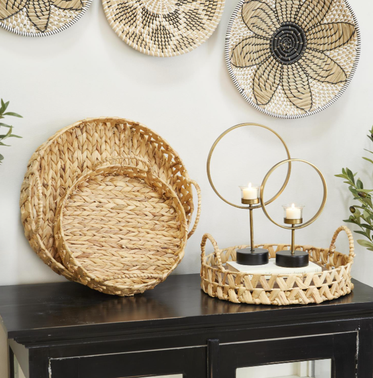 Inspired by blissful serenity and the allure of the sea, where soothing hues and natural textures bring effortless charm to the home. Brown living room decor tray set is crafted from dried seagrass, ensuring durable and sustainable materials. Rectangle decorative tray set highlights a textured brown finish, showcasing a rich palette of earthy tones.