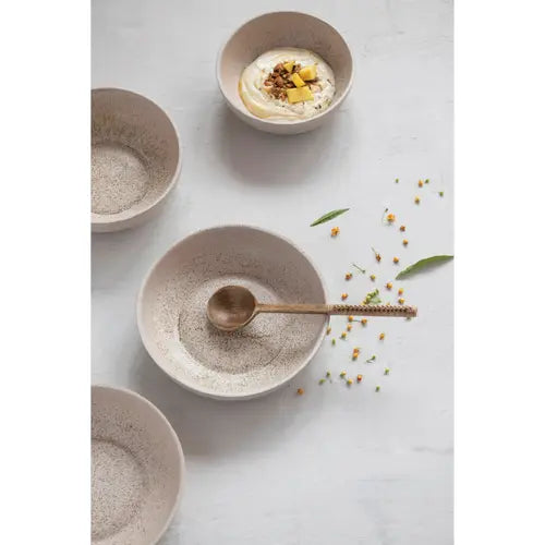 Stoneware Bowl, Reactive Glaze, Cream Color Speckled (Each One Will Vary).