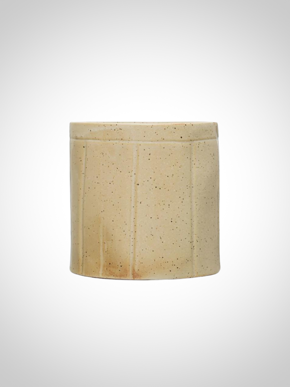 Decorative Stoneware Crock w/ Debossed Lines, Reactive Glaze, Beige (Holds 5" Pot) (Each One Will Vary).