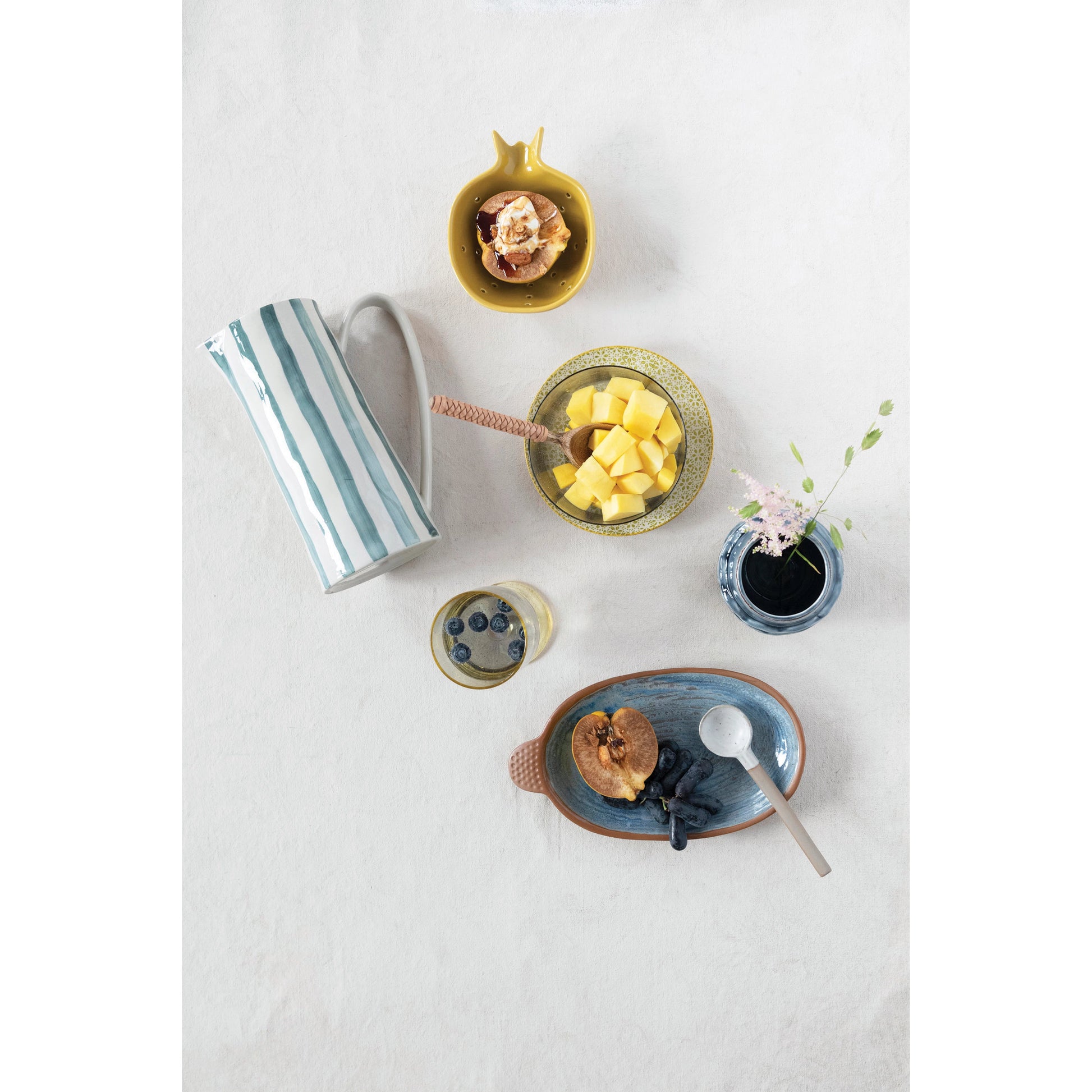 7"L x 4-1/4"W x 9"H 42 oz. Hand-Painted Stoneware Pitcher w/ Stripes, White & Blue, 42 oz.