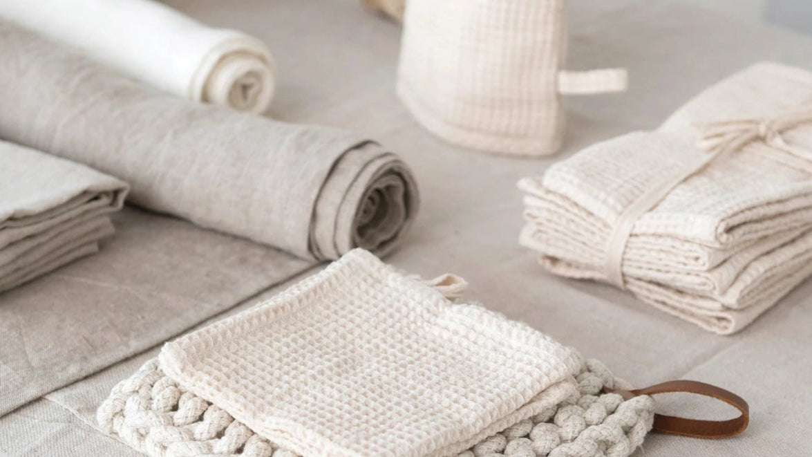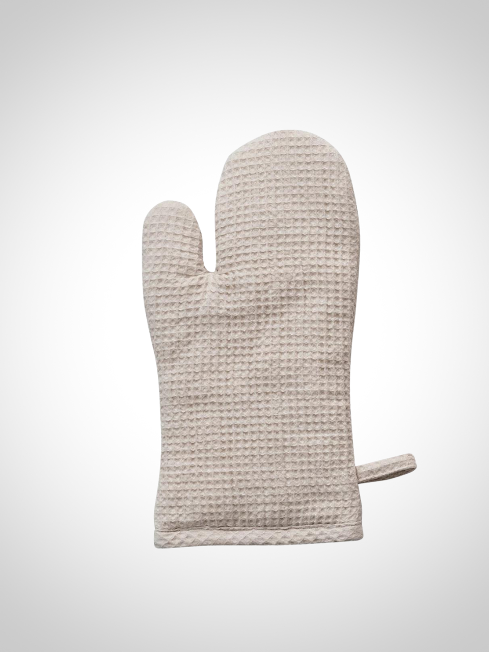 Woven Linen & Cotton Waffle Hot Mitt, Cream Color. Materials: 54% Linen, 46% Cotton
