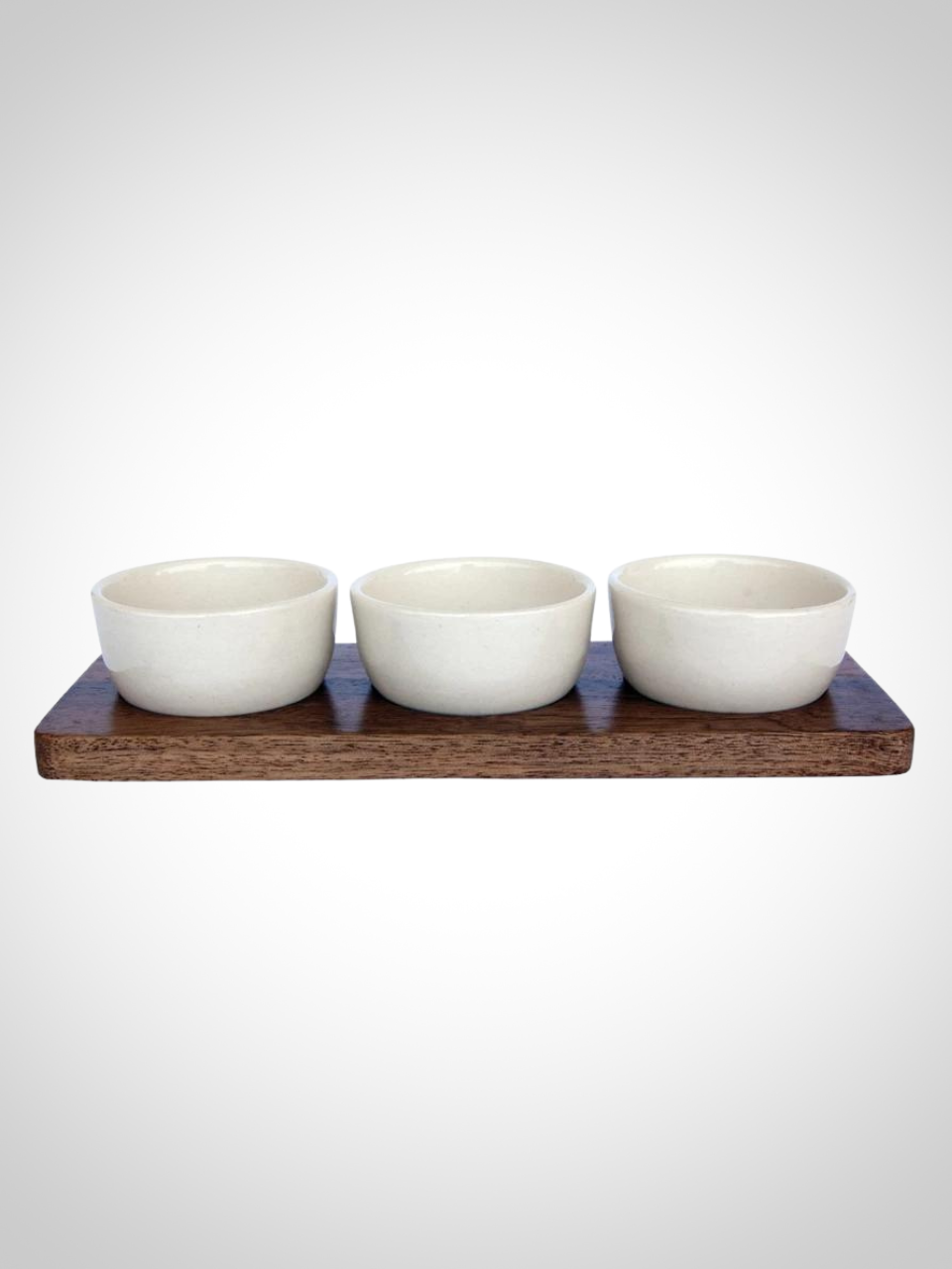 0-1/2"L x 4"W Mango Wood Tray w/ (3) 3-1/4" Round x 1-1/2"H 2 oz
