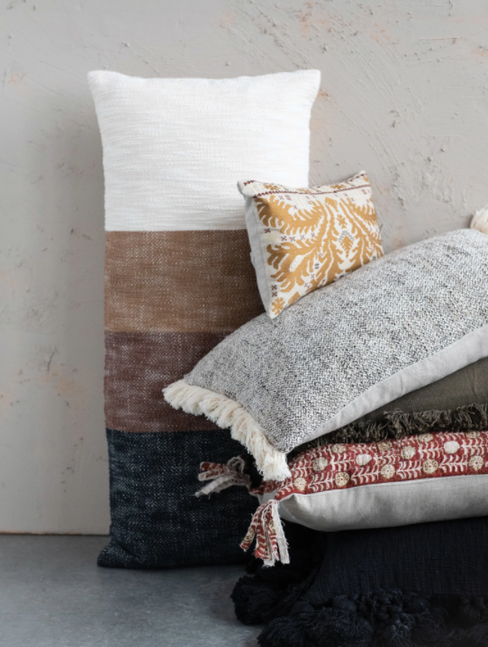 36"L x 16"H Woven Cotton Slub Lumbar Pillow, Multi Color